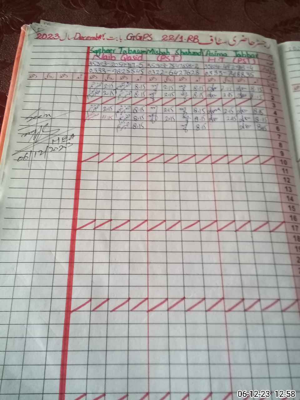 | CNIC | Full Name | Designation | R/C | Absence During Last Calender Month |