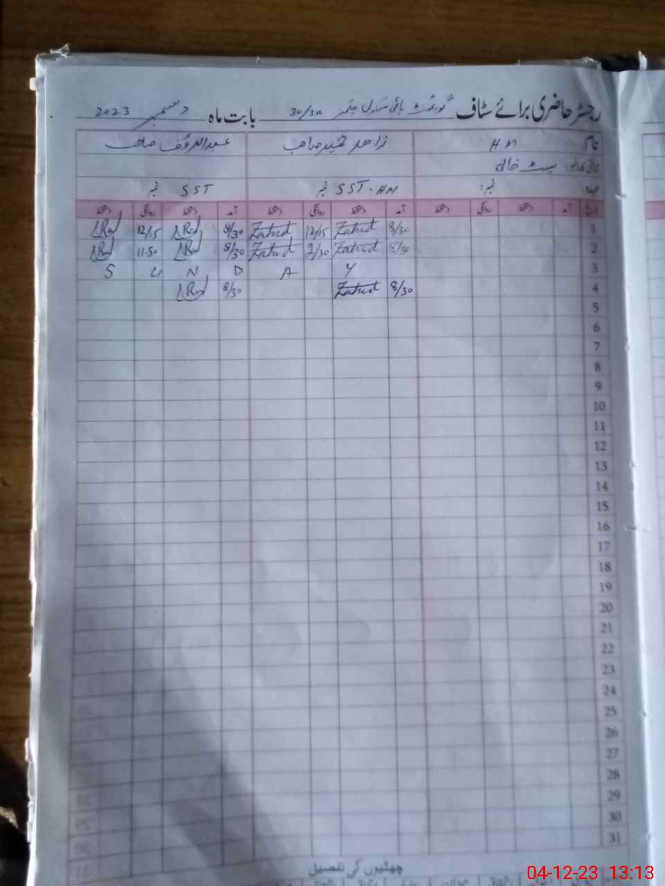| CNIC | Full Name | Designation | R/C | Absence During Last Calender Month |