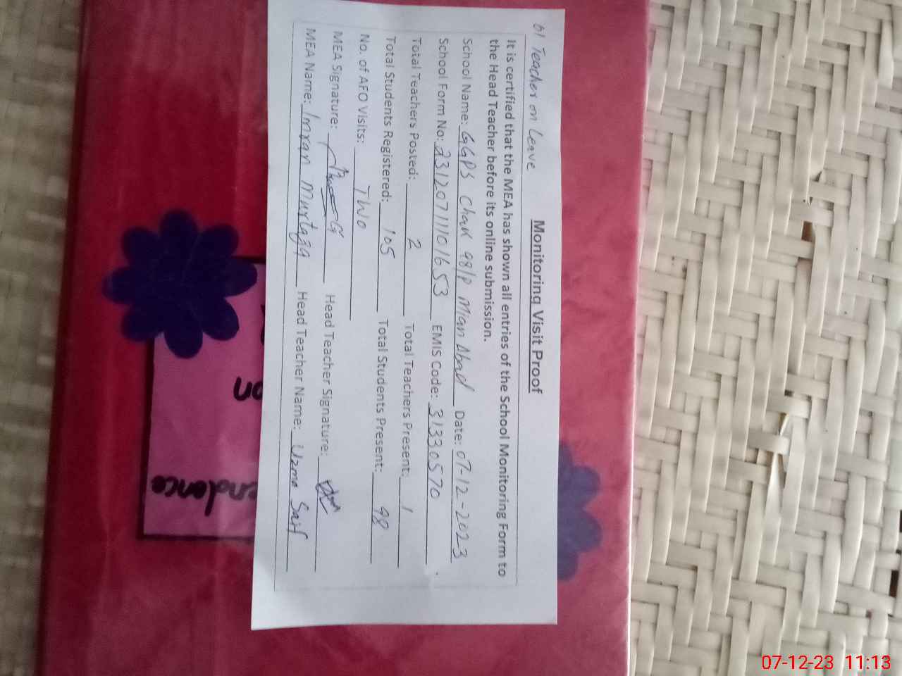 | EMIS Code: 31330570 | Name of School: GGPS 98/P MIAN ABAD | |||