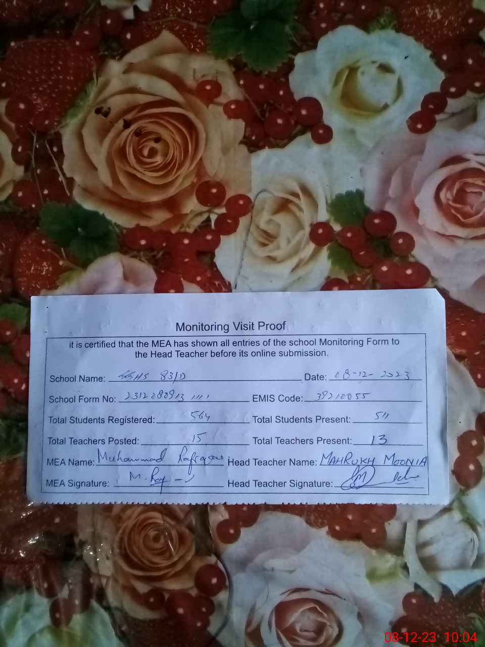 | Name: MA**** MO**** Designation: (School Headmaster's/Headmistress's) SST SCI Phone/Cell Number: 03**** |