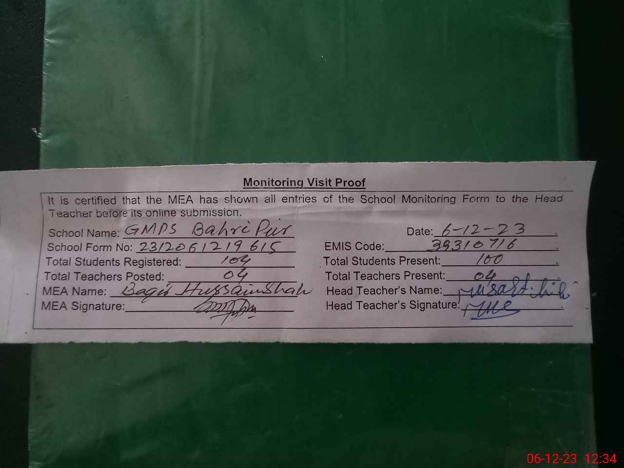 | EMIS Code: 39310716 | Name of School: GMPS BAHRI PUR | |||