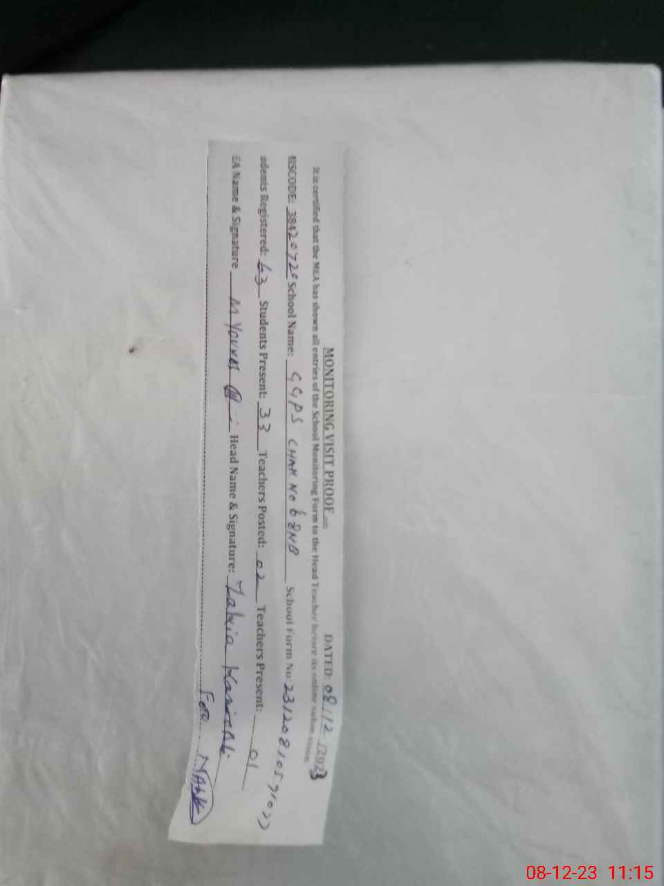 | Attendance Register | Head Teacher | MEA with School | Visit Proof |