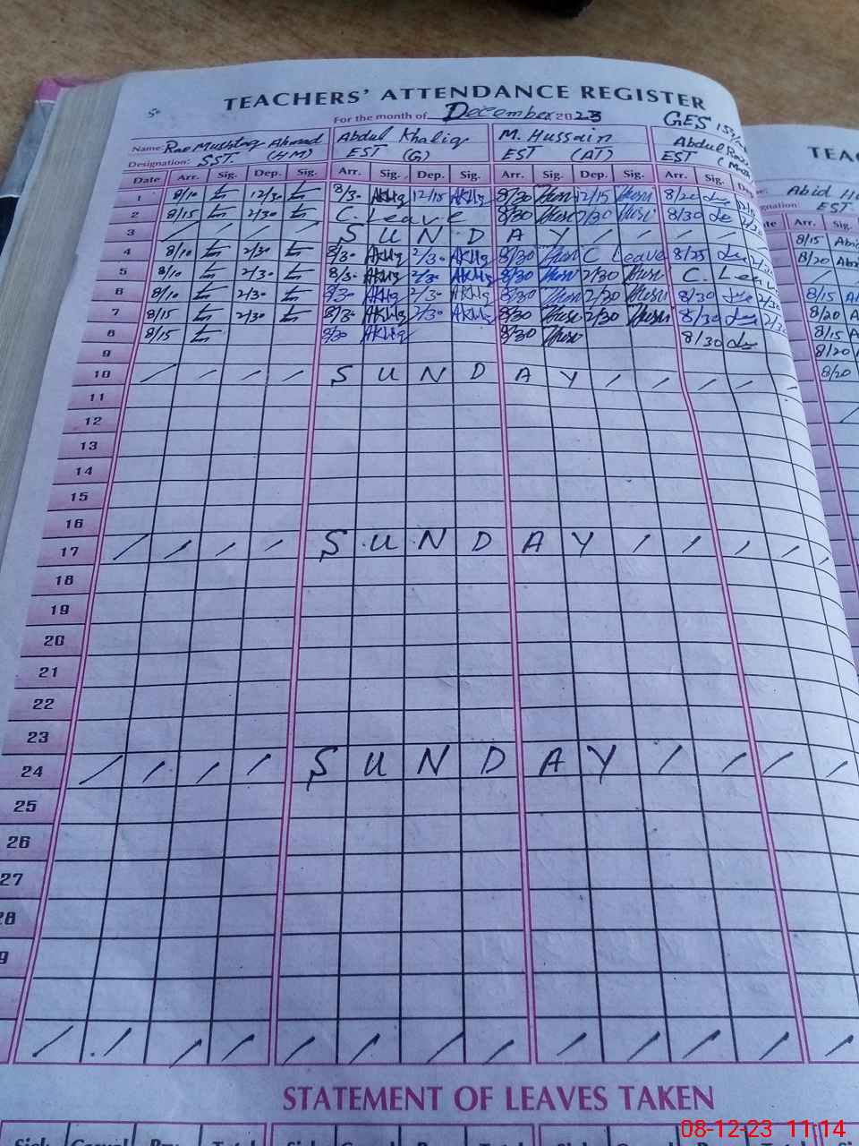 | CNIC | Full Name | Designation | R/C | Absence During Last Calender Month |