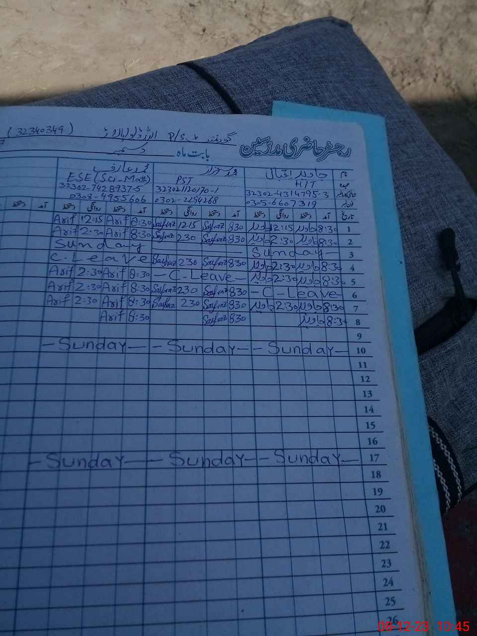 | Name: MU**** Sa**** Designation: (School Headmaster's/Headmistress's) ESE Phone/Cell Number: 03**** |