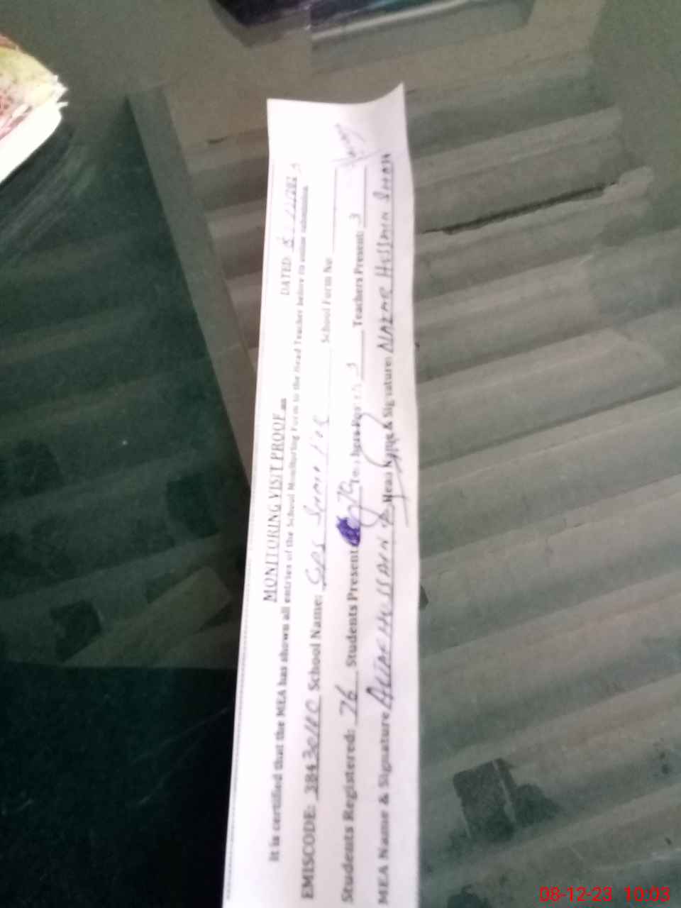 | Attendance Register | Head Teacher | MEA with School | Visit Proof |