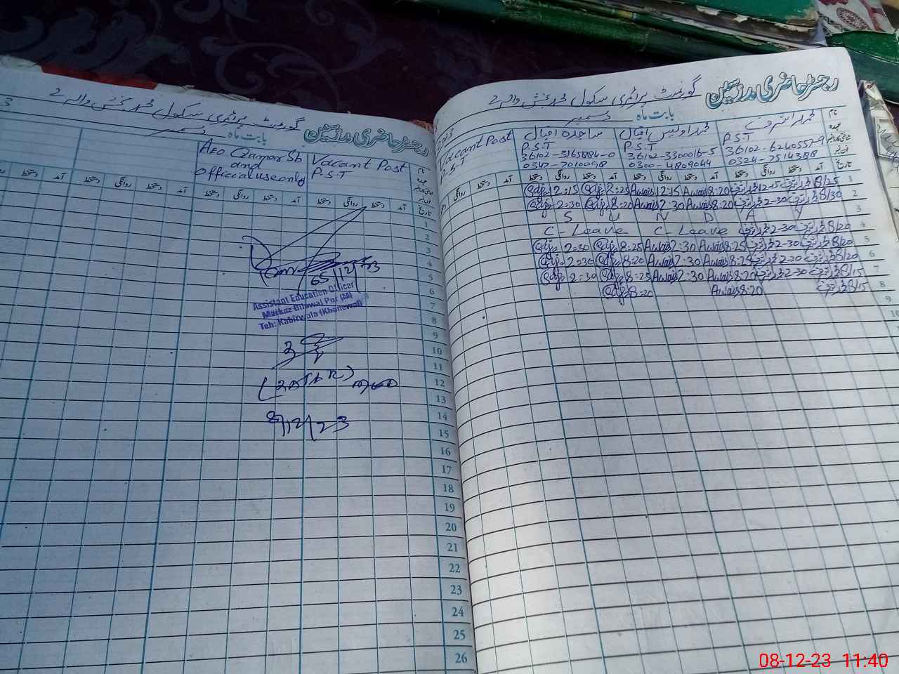 | Name: Mu**** Aw**** Iq**** Designation: (School Headmaster's/Headmistress's) PST Phone/Cell Number: 03**** |