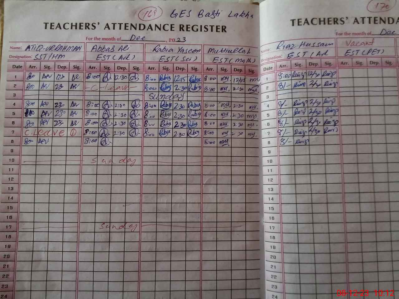 | CNIC | Full Name | Designation | R/C | Absence During Last Calender Month |