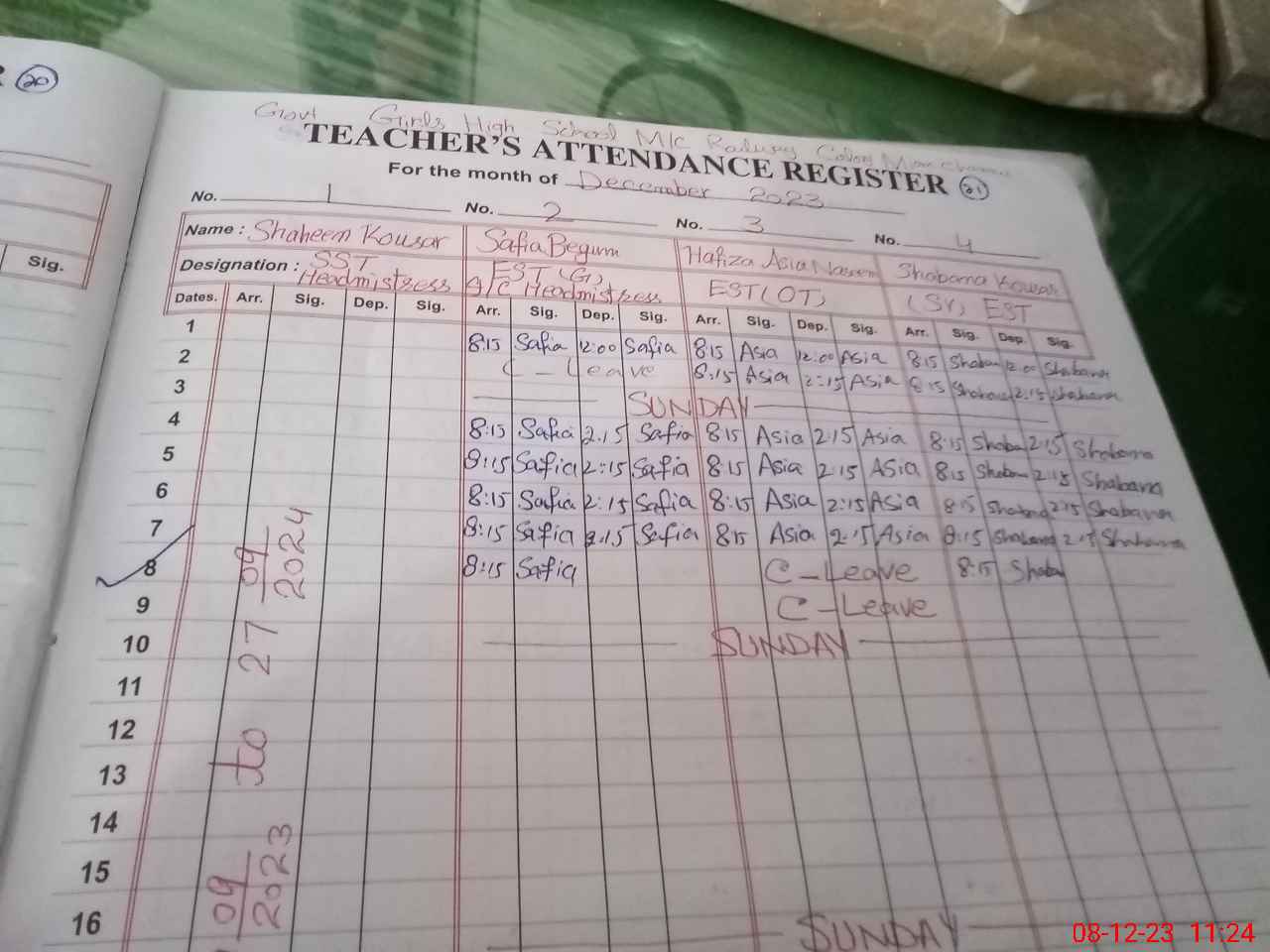 | CNIC | Full Name | Designation | R/C | Absence During Last Calender Month |