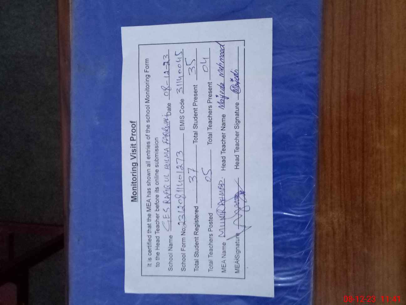 | EMIS Code: 31140045 | Name of School: GES RAFIQ-UL-HULMA FAQIR WALI | |||