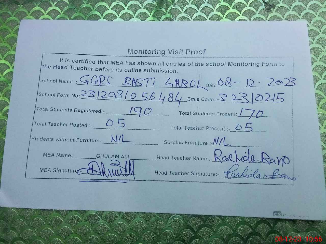 | EMIS Code: 32310215 | Name of School: GGPS BASTI GABOOL | |||