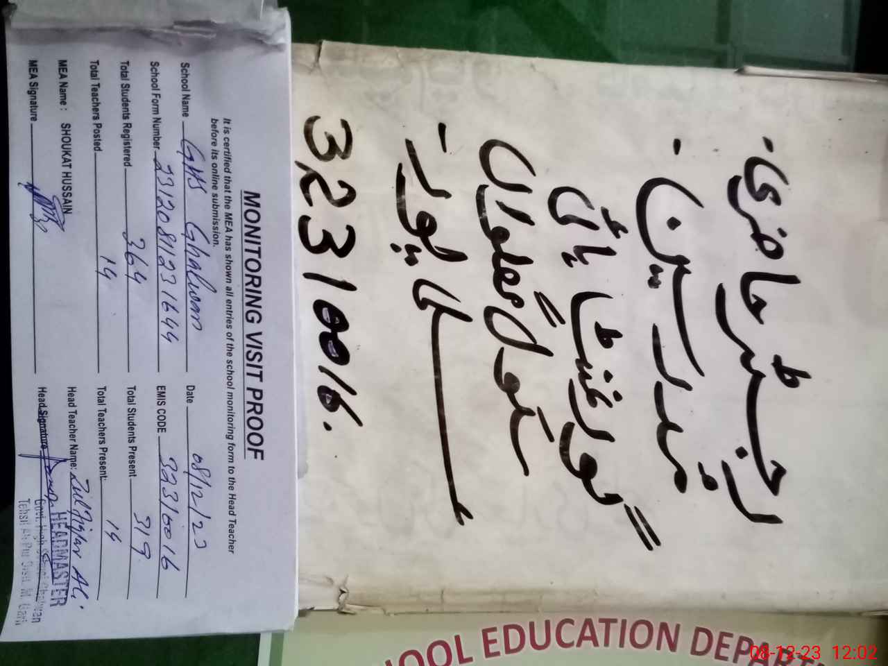 | EMIS Code: 32310016 | Name of School: GHS GHALWAN | |||