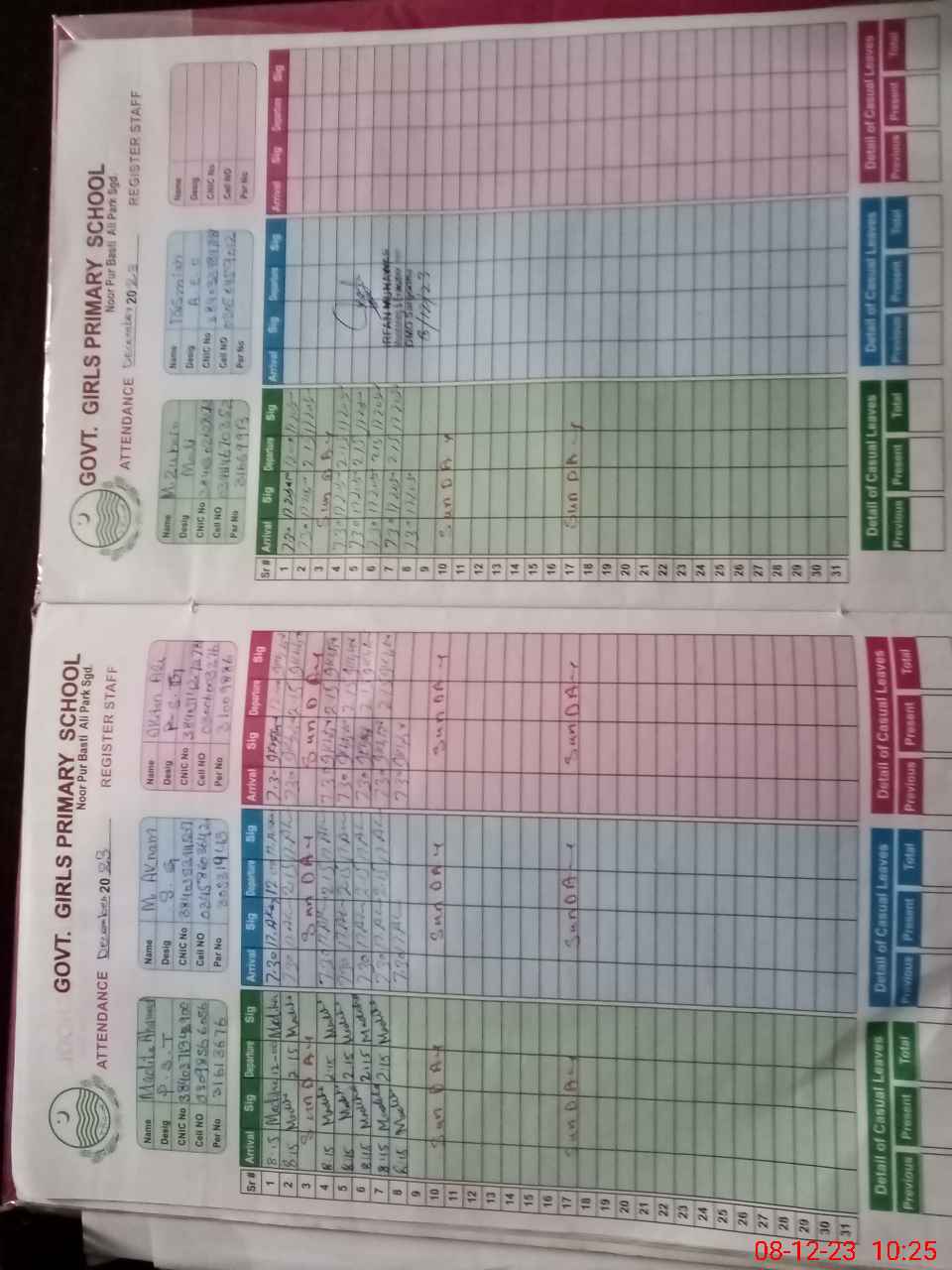 | Remarks (Use Separate Page if Required): TEACHER KISHWER HAFEEZ IS ON ATTCHMENT IN GGPS JOHAR COLONY SGD | |||||
