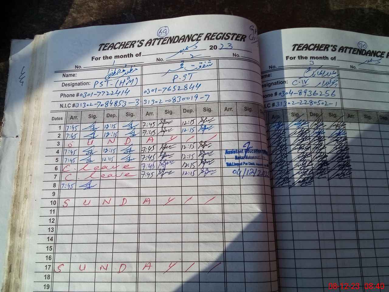 | Name: MA**** MU**** Designation: (School Headmaster's/Headmistress's) PST Phone/Cell Number: 03**** |