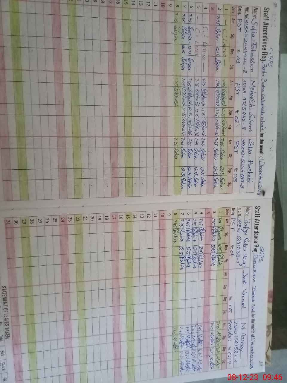 | CNIC | Full Name | Designation | R/C | Absence During Last Calender Month |