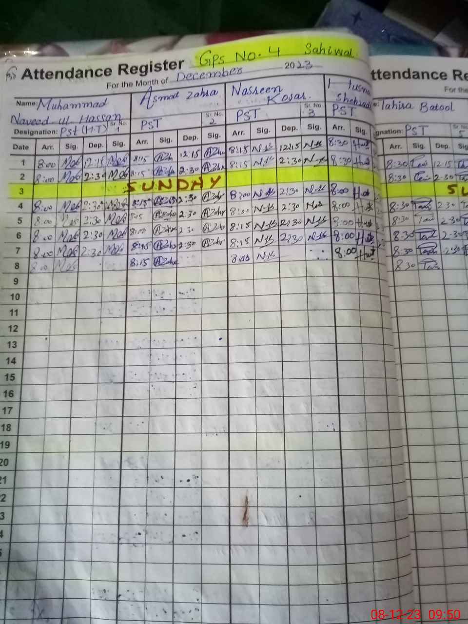 | EMIS Code: 38450214 | Name of School: GPS NO.4 SAHIWAL | |||