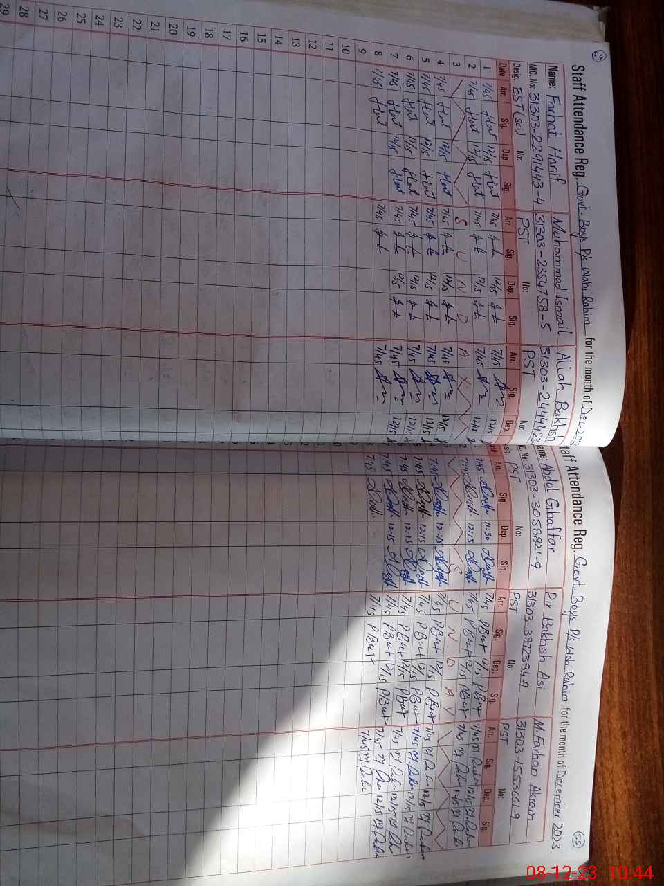 | CNIC | Full Name | Designation | R/C | Absence during last cal. month |