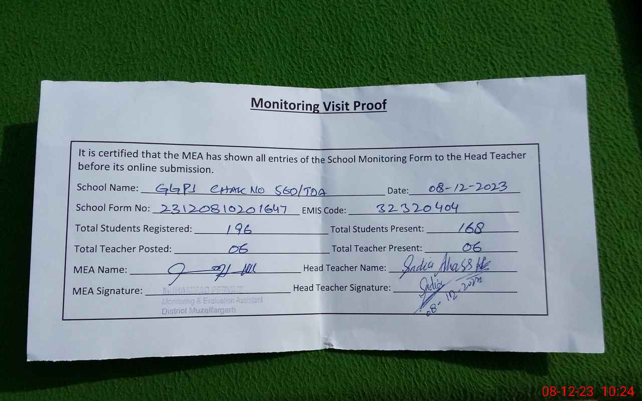| EMIS Code: 32320404 | Name of School: GGPS CHAK NO. 560/TDA (AZIZ ABAD) | |||