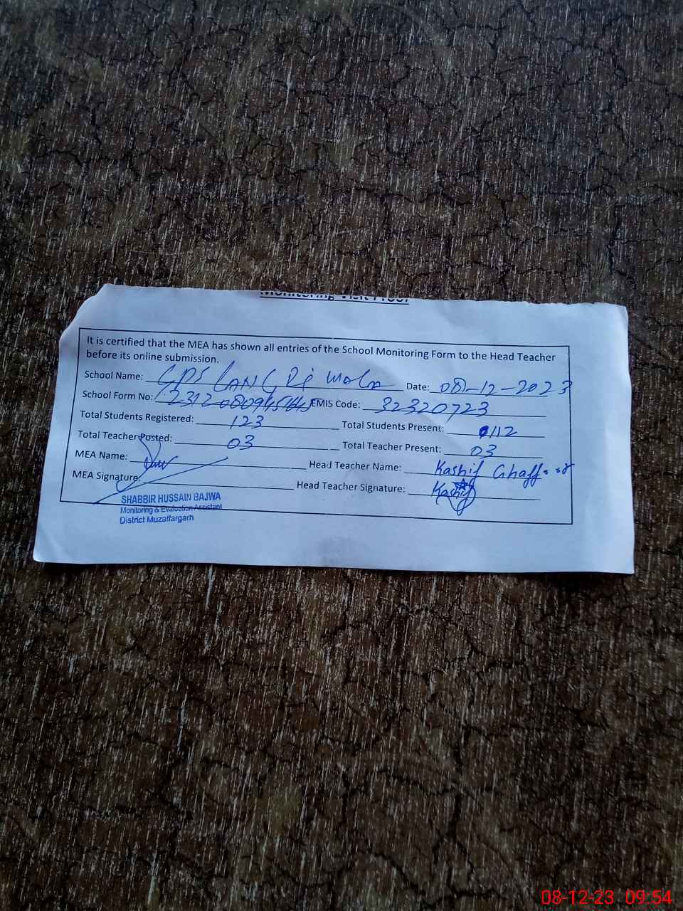 | EMIS Code: 32320723 | Name of School: GPS LANGRI WALA | |||