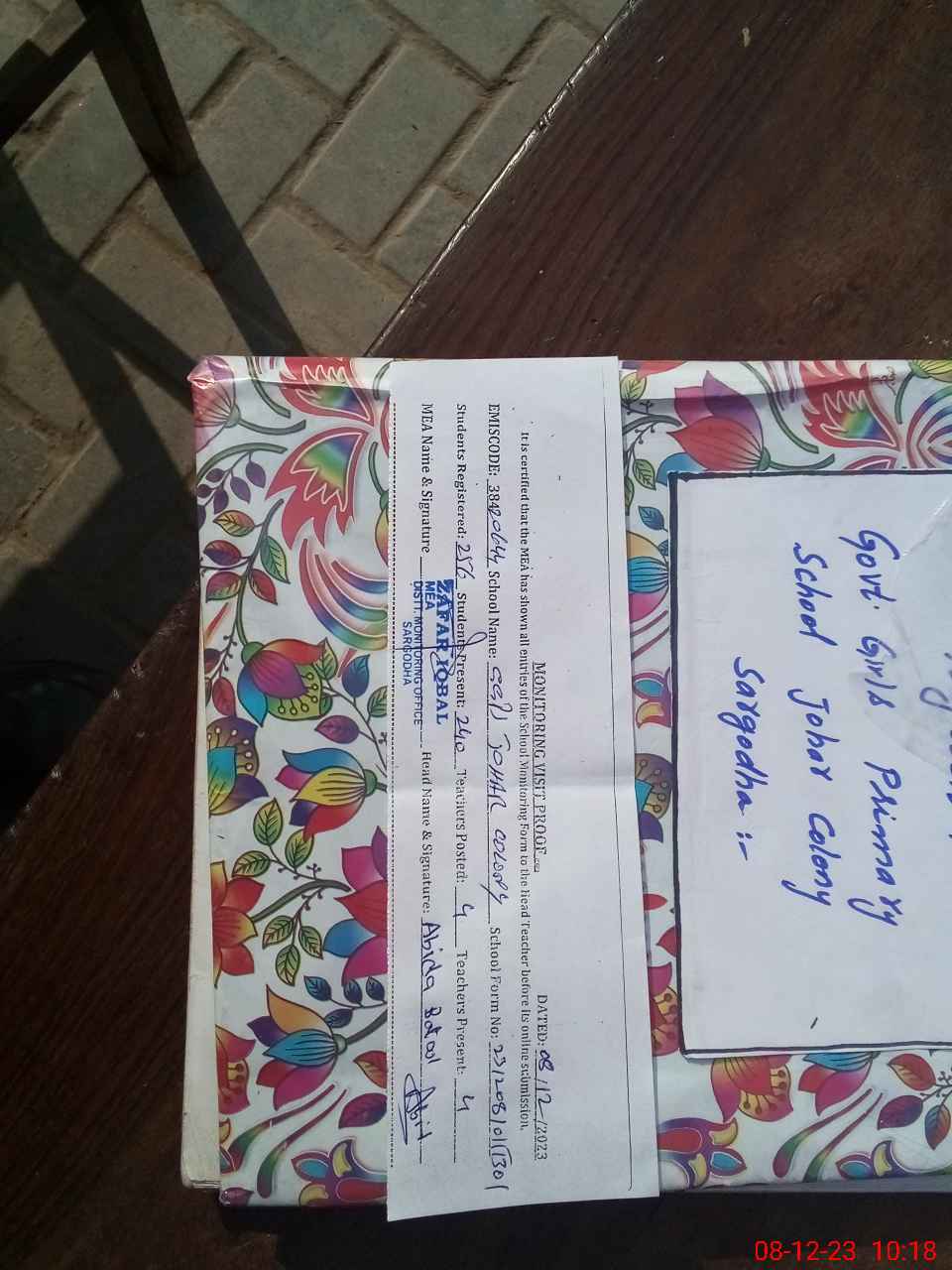 | EMIS Code: 38420644 | Name of School: GGPS JOHAR COLONY SARGODHA | |||