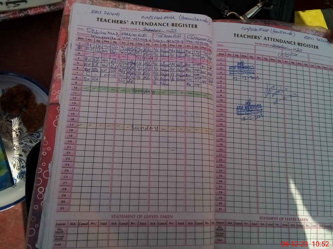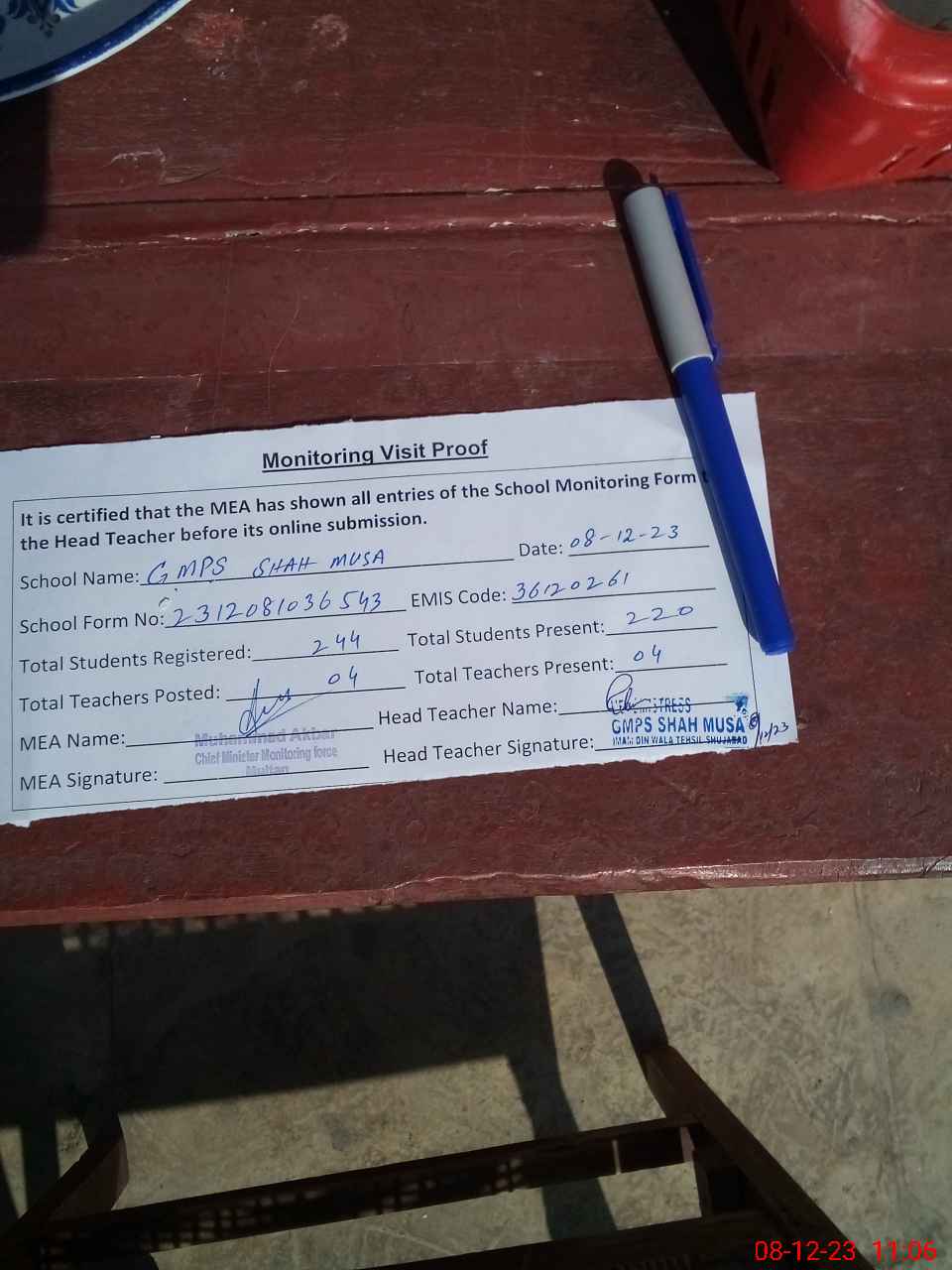 | Attendance Register | Head Teacher | MEA with School | Visit Proof |