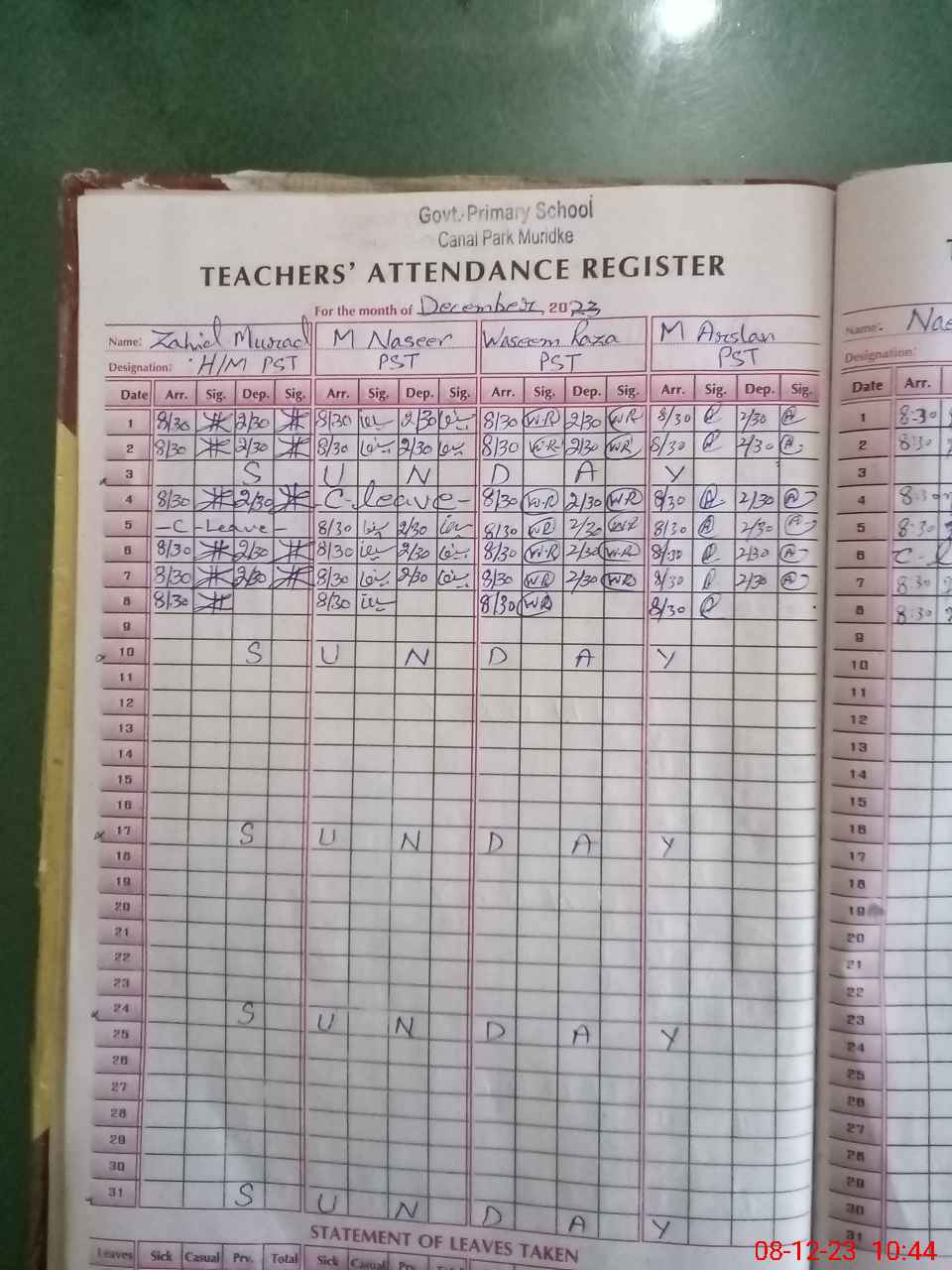 | Leave | Duty | Absent | Maternity | Medical | Ex- Pak |