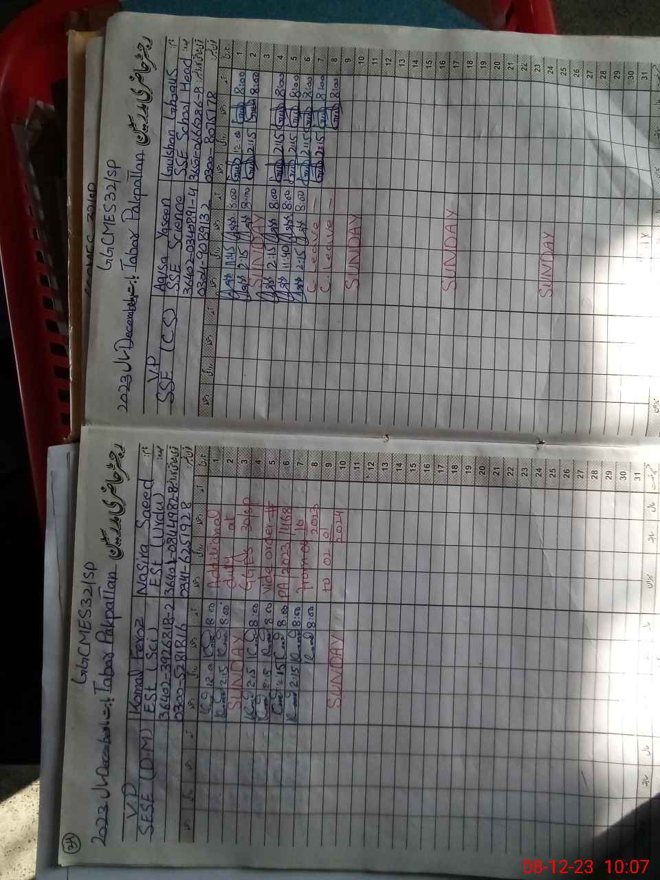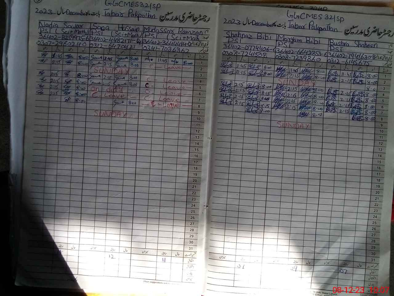 | CNIC | Full Name | Designation | R/C | Absence During Last Calender Month |