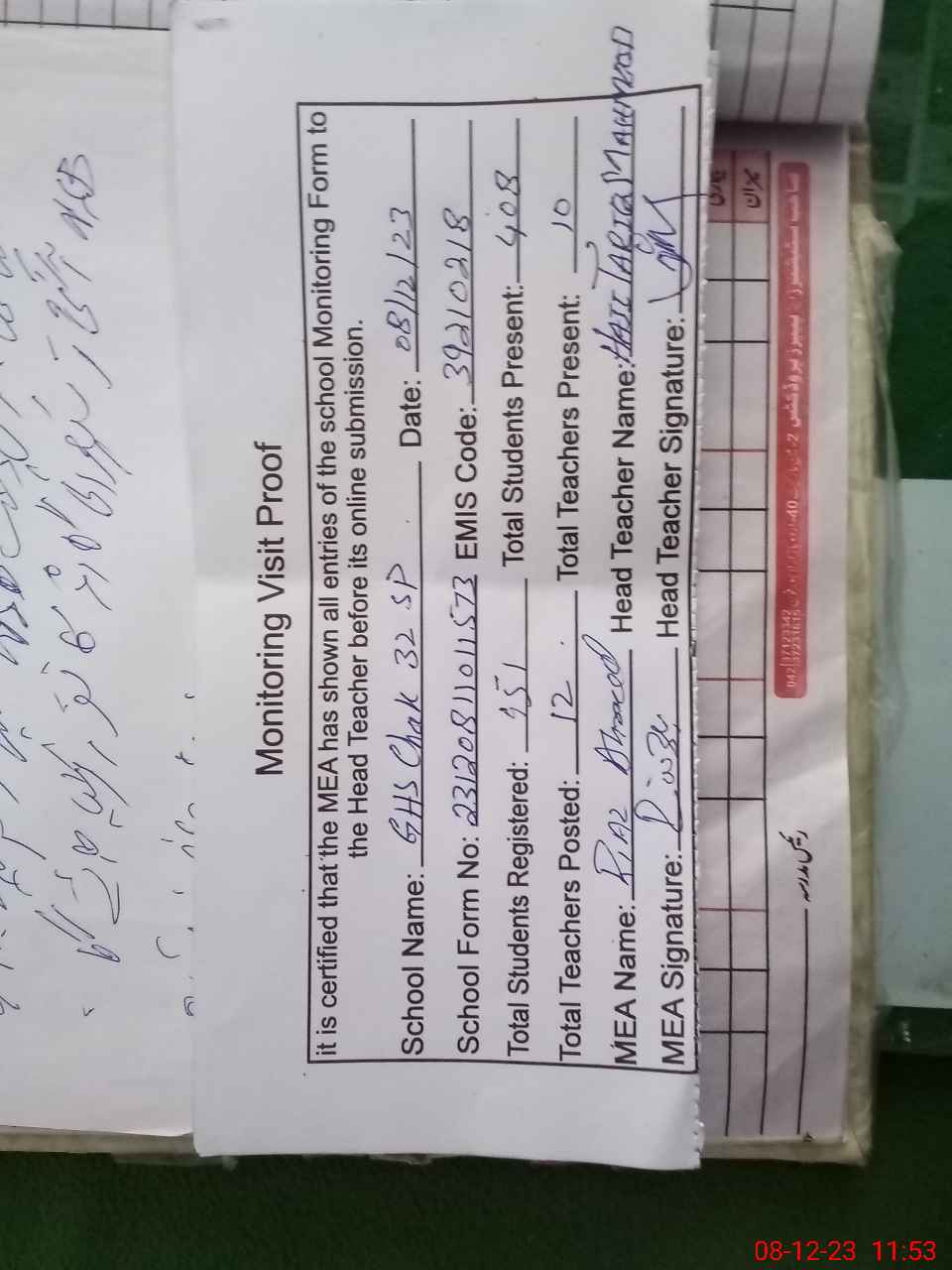 | EMIS Code: 39210218 | Name of School: GHS CHAK NO. 32 SP | |||