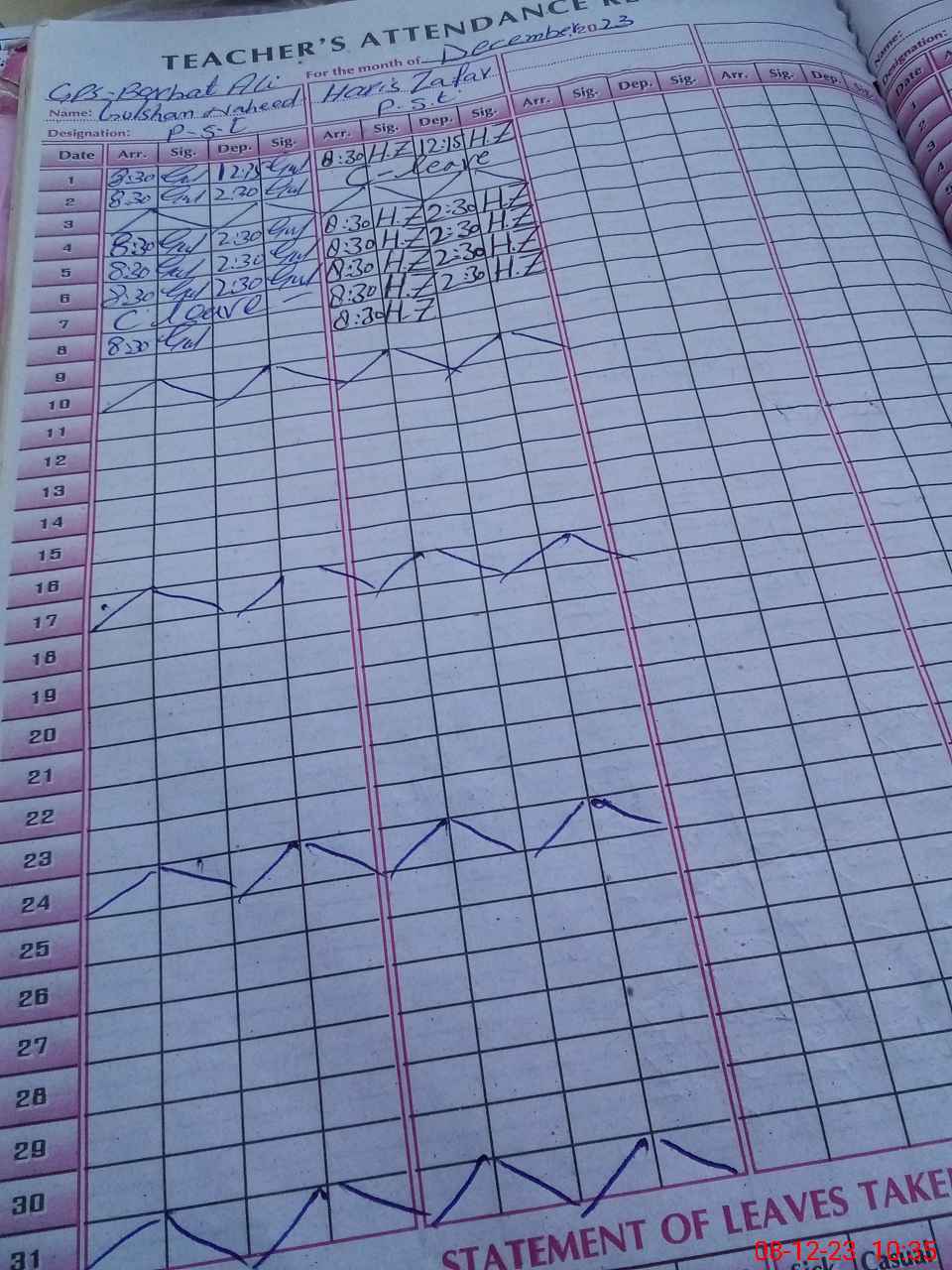 | CNIC | Full Name | Designation | R/C | Absence During Last Calender Month |