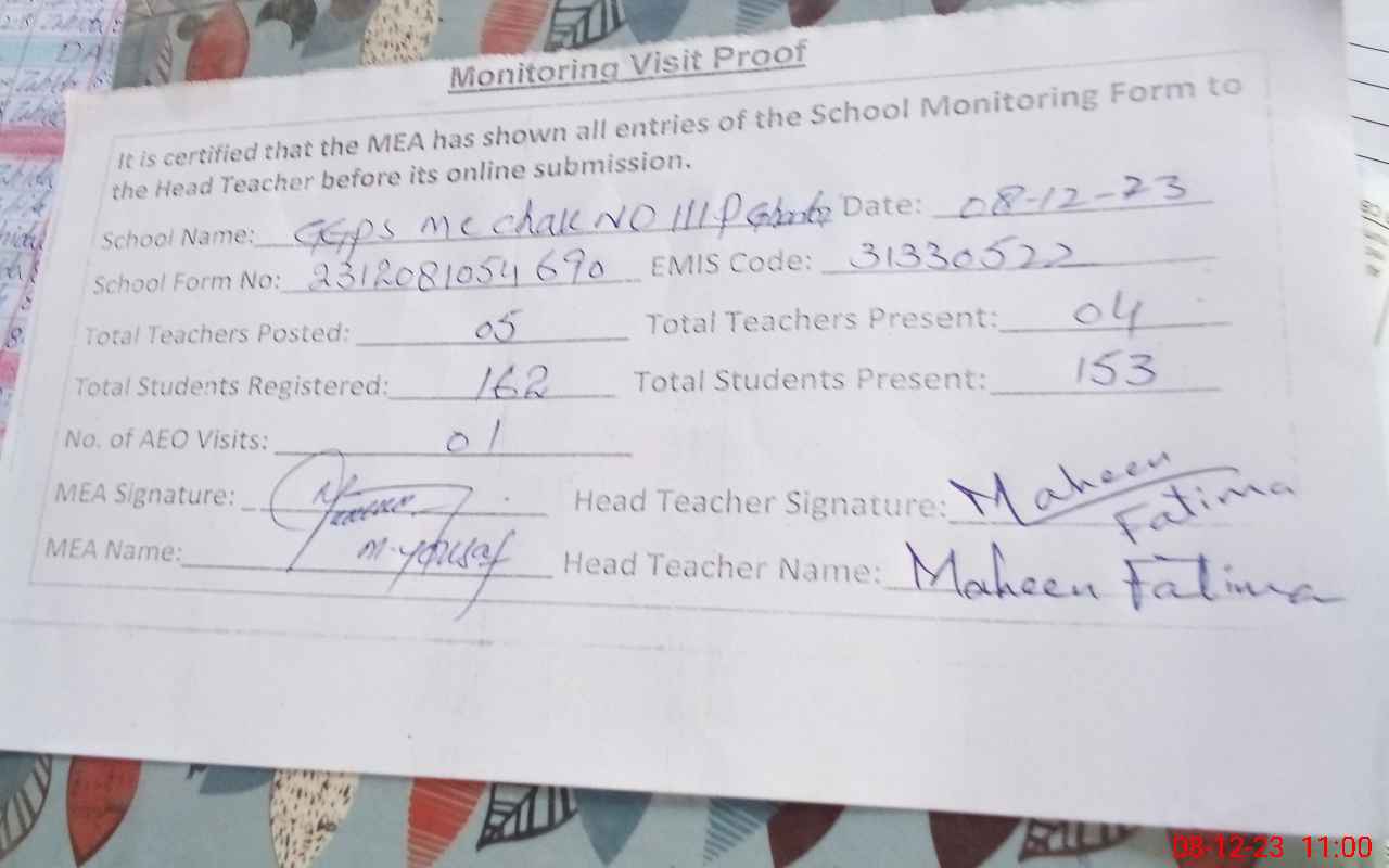 | EMIS Code: 31330522 | Name of School: GGPS MC CHAK NO.111/P GHARBI | |||