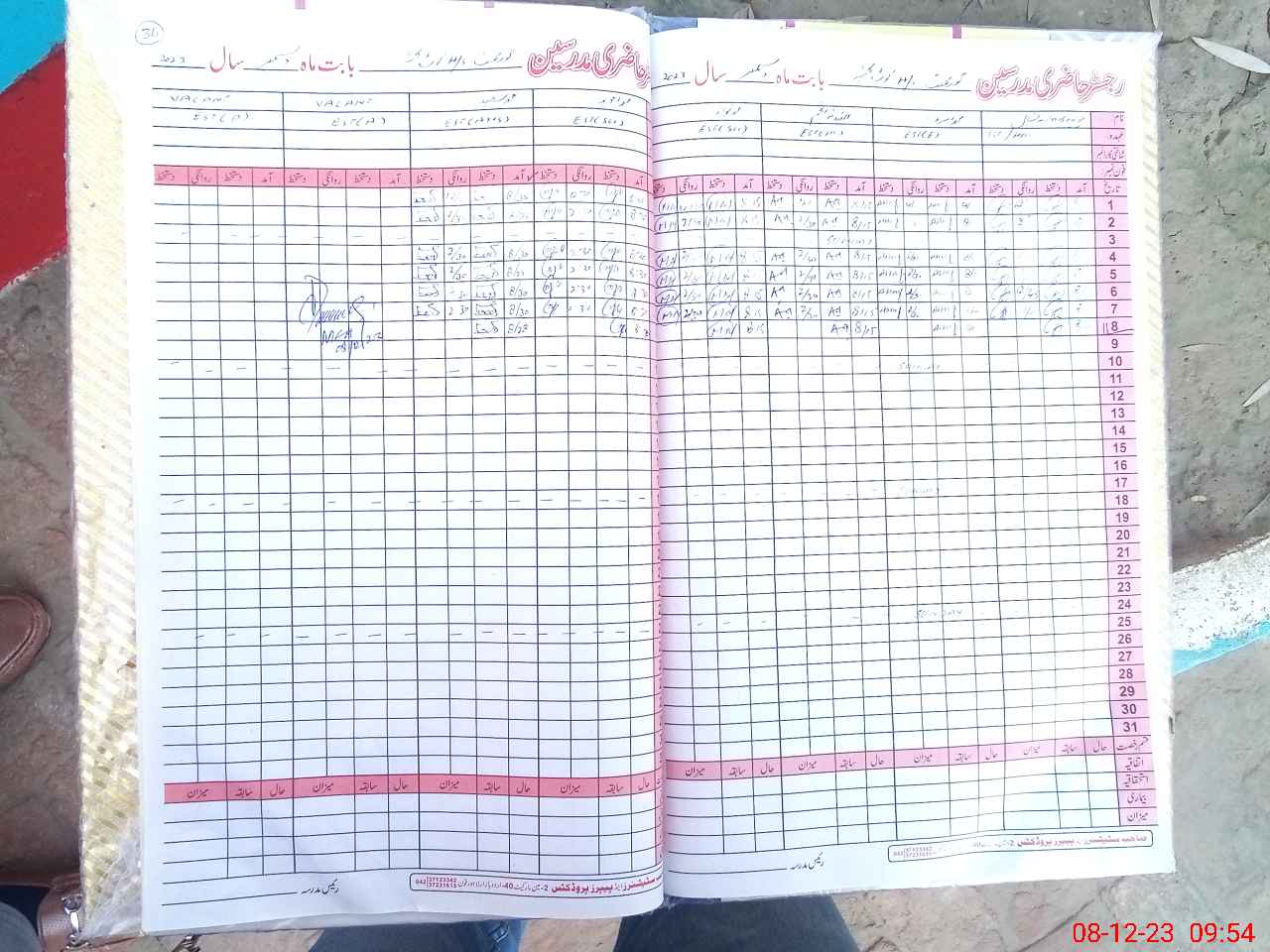 | CNIC | Full Name | Designation | R/C | Absence During Last Calender Month |