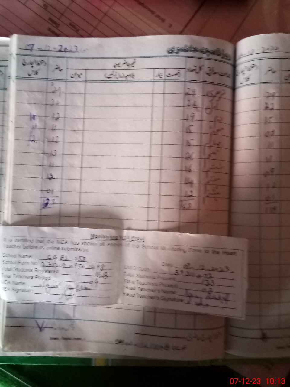 | Attendance Register | Head Teacher | MEA with School | Visit Proof |