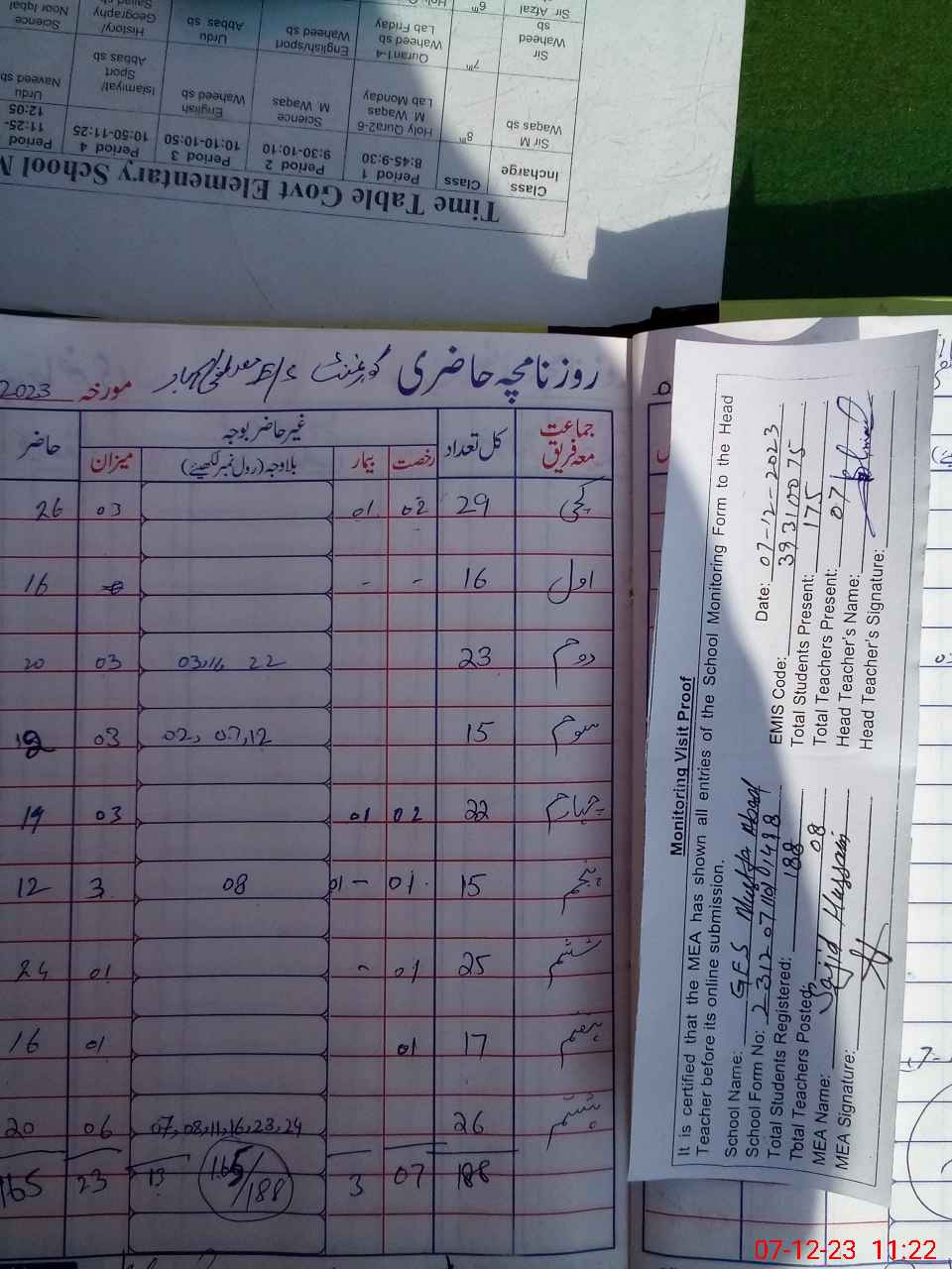 | Attendance Register | Head Teacher | MEA with School | Visit Proof |
