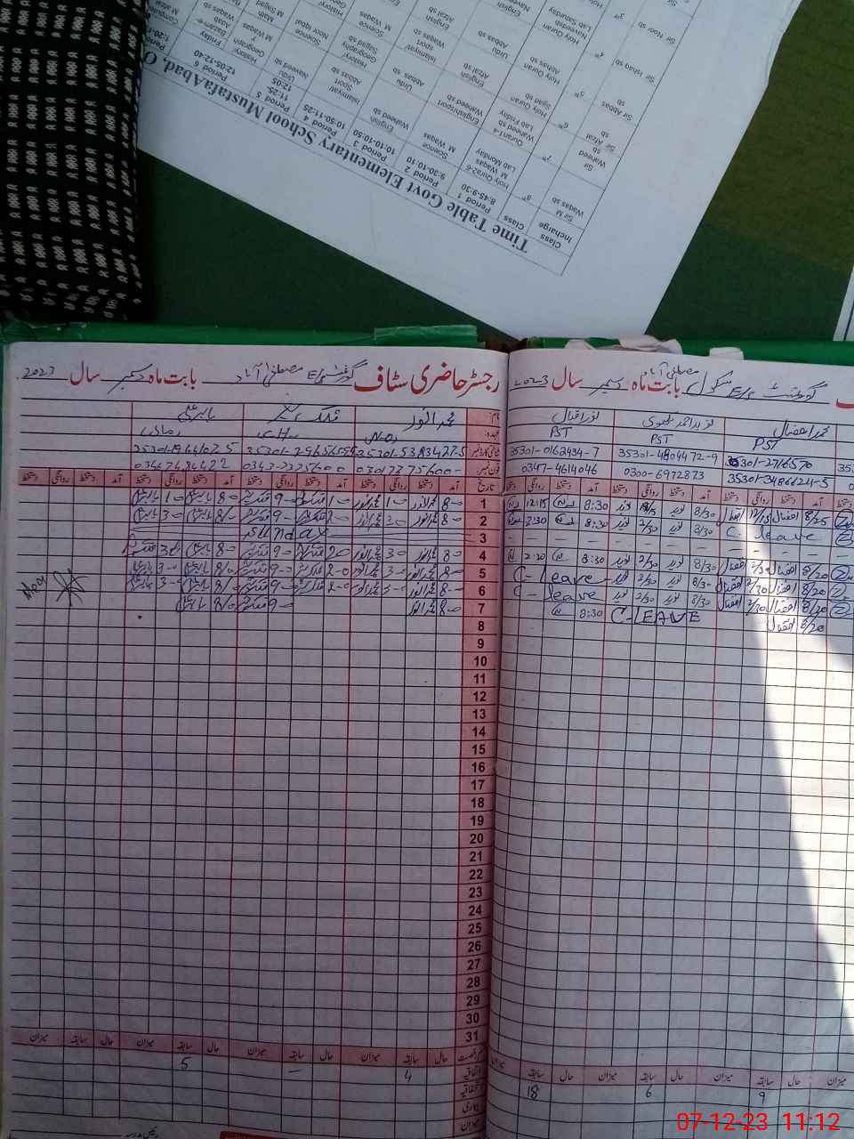 | CNIC | Full Name | Designation | R/C | Absence During Last Calender Month |