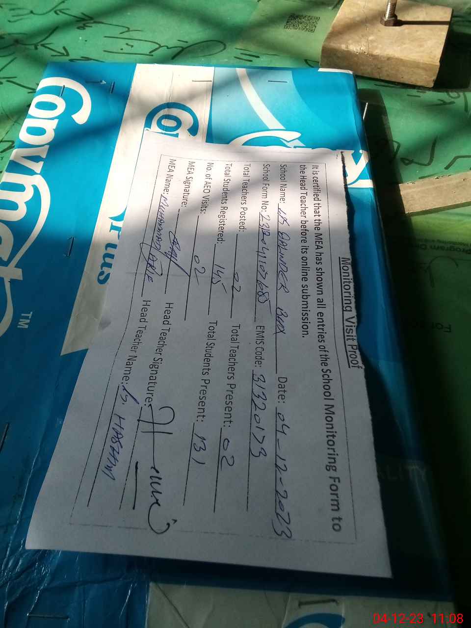 | EMIS Code: 31320173 | Name of School: GPS QALANDER BUKHASH | |||