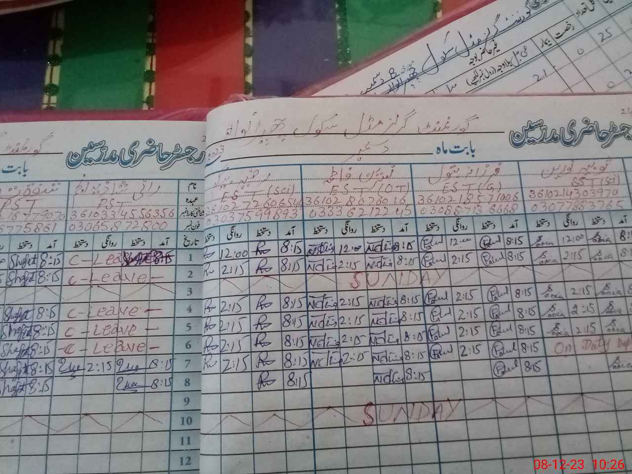 | CNIC | Full Name | Designation | R/C | Absence During Last Calender Month |