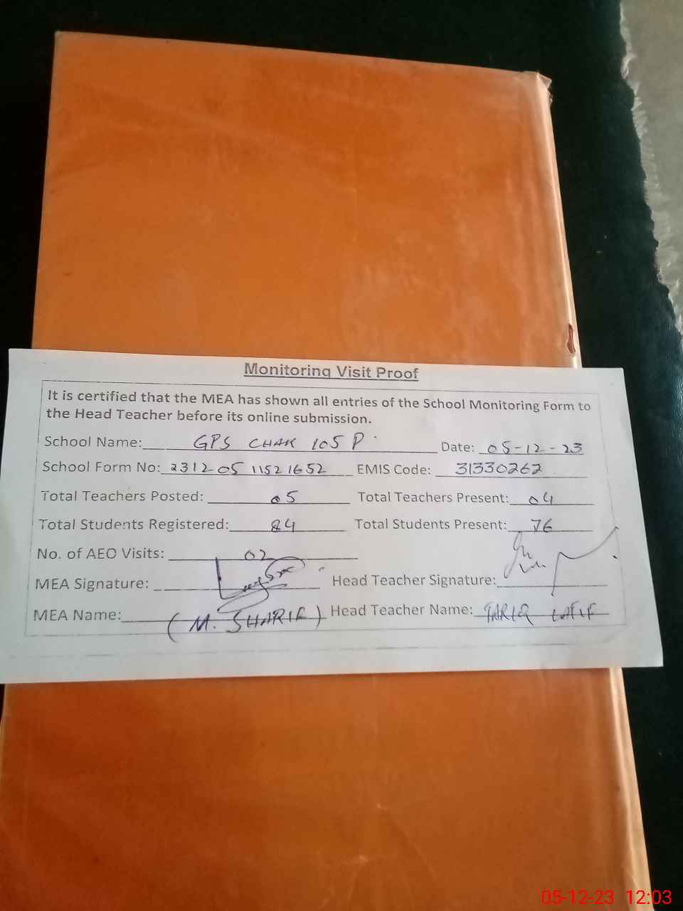 | EMIS Code: 31330262 | Name of School: GPS CHAK 105/P | |||