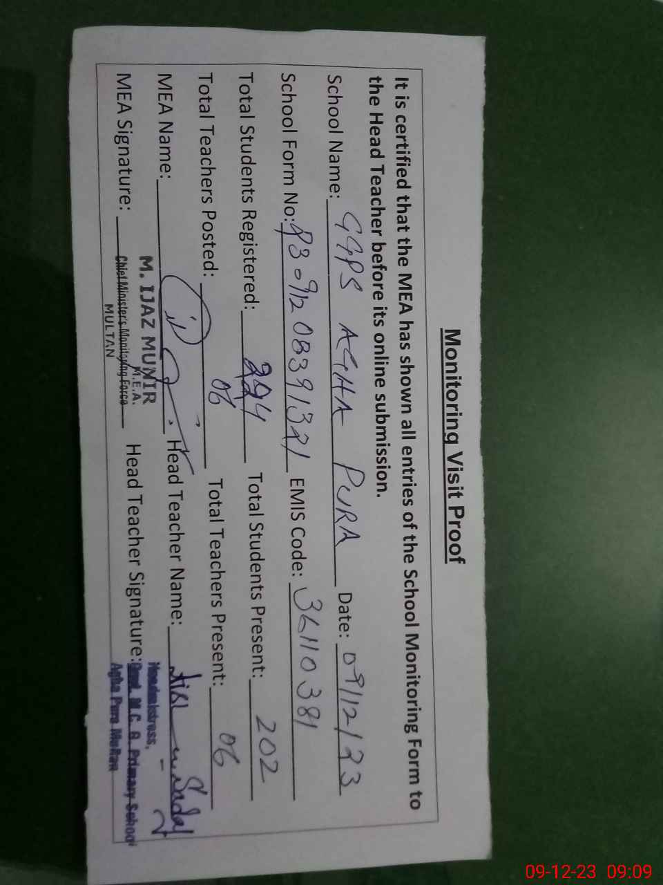 | EMIS Code: 36110381 | Name of School: GGPS MC AGHA PURA | |||