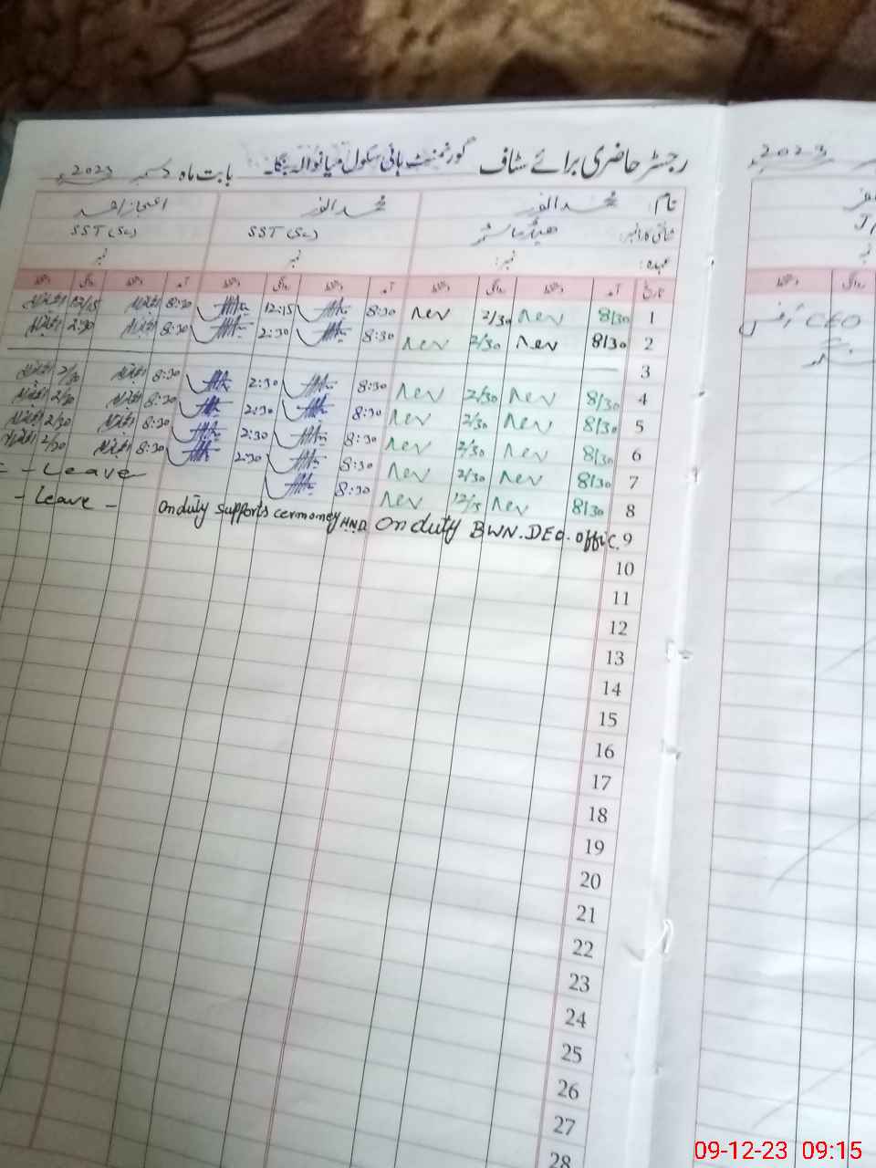 | CNIC | Full Name | Designation | R/C | Absence During Last Calender Month |