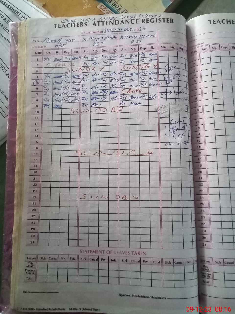 | Name: Ah**** Ya**** Designation: (School Headmaster's/Headmistress's) PST Phone/Cell Number: 03**** |