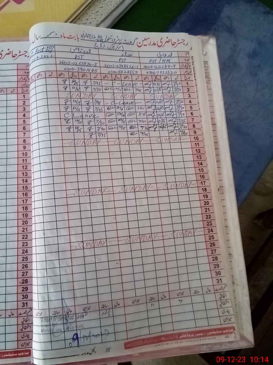 | Name: Sy**** Im**** Ha**** Sh**** Designation: (School Headmaster's/Headmistress's) PST Phone/Cell Number: 03**** |