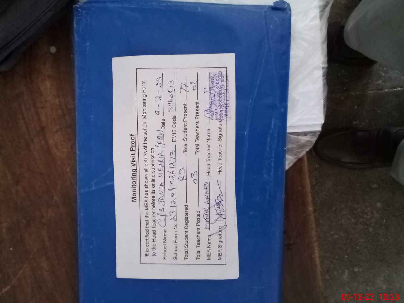 | Attendance Register | Head Teacher | MEA with School | Visit Proof |