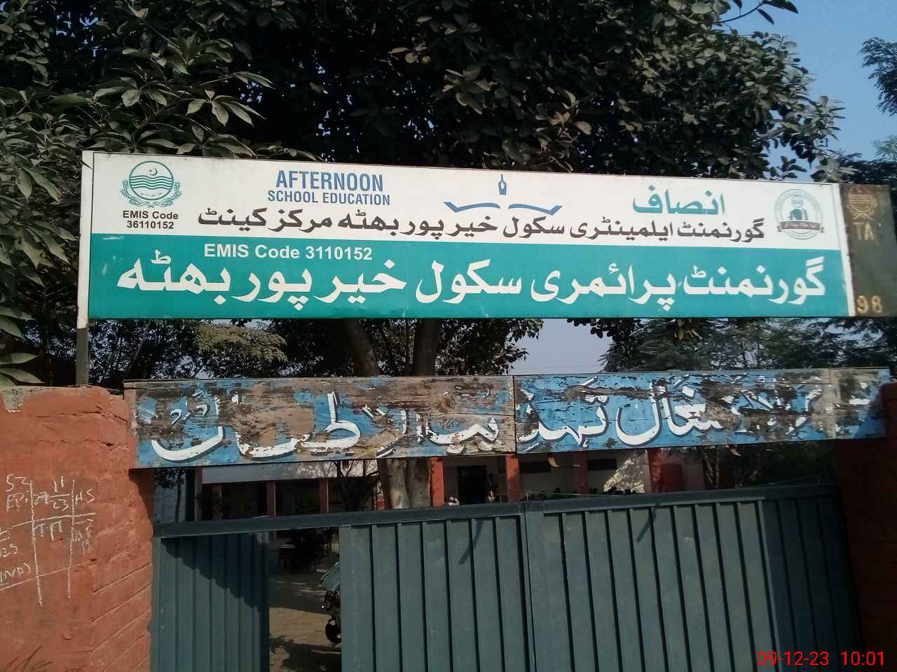 | EMIS Code: 36110152 | Name of School: GPS KHAIR PUR BHUTTA CANTT P/O QASIM BELLA | |||