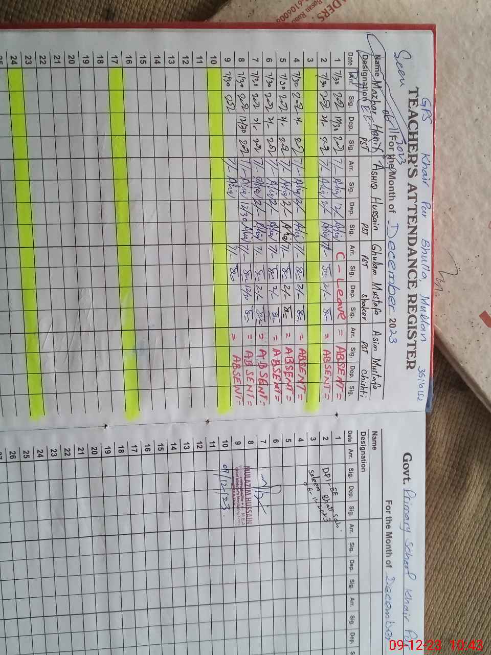 | CNIC | Full Name | Designation | R/C | Absence During Last Calender Month |