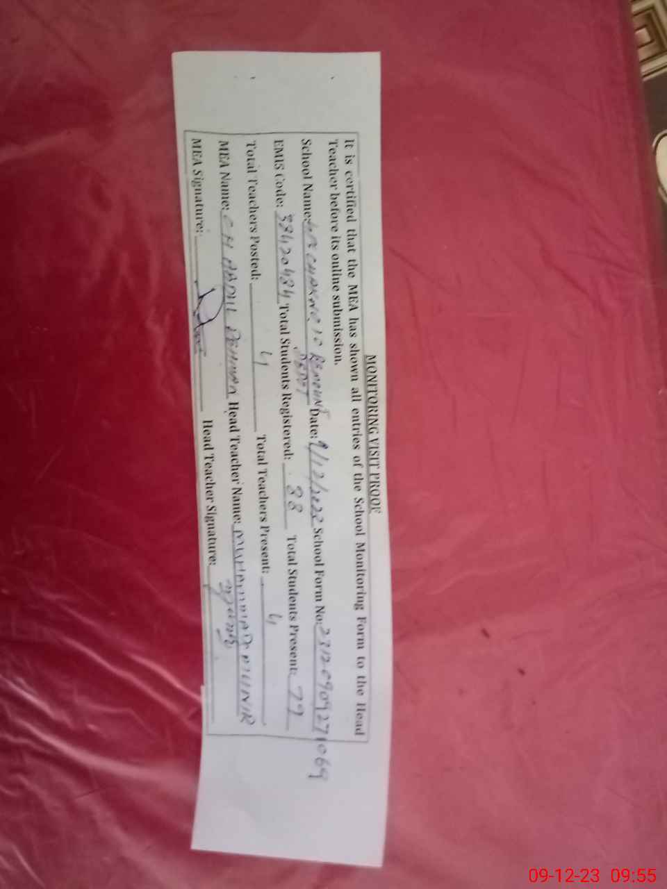 | Certified that this School was Inspected by the Undersigned MEA/DMO Today and the Information Stated Above is as Per Record. | |||||