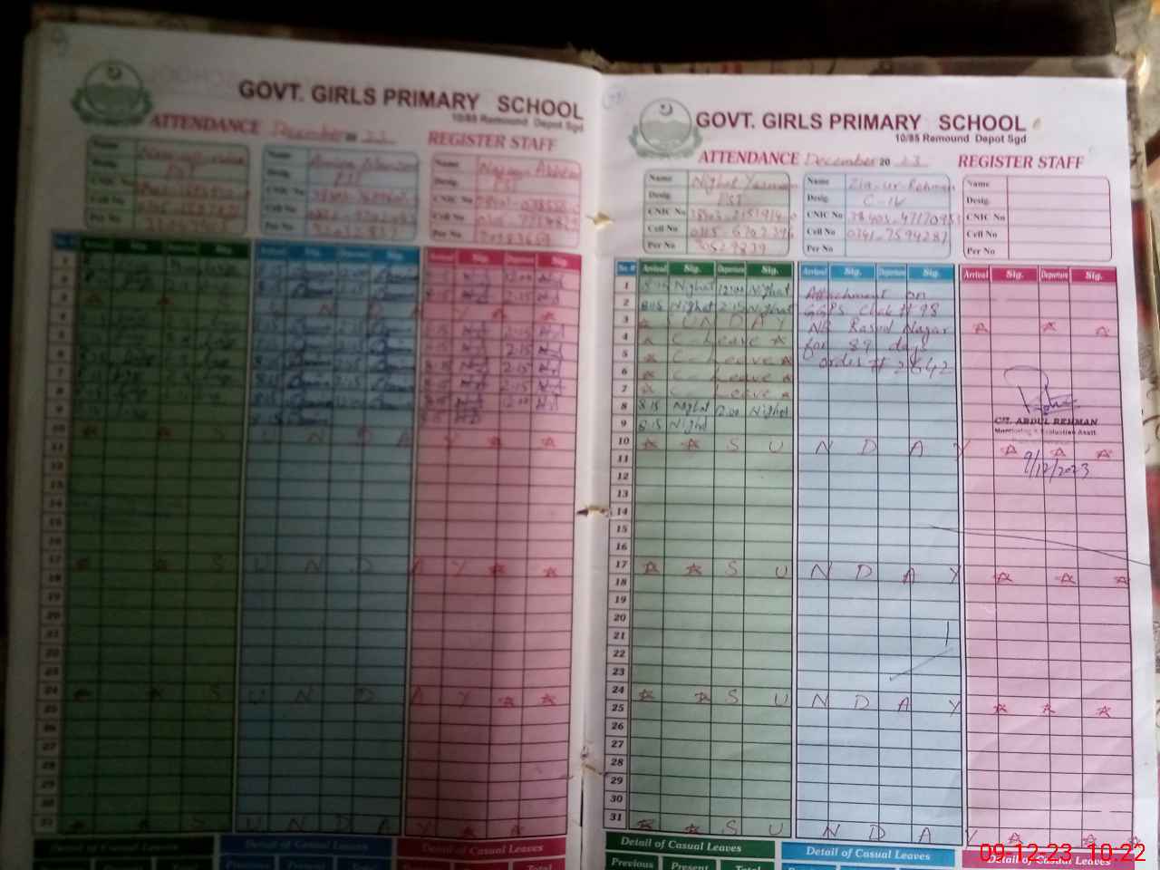 | CNIC | Full Name | Designation | R/C | Absence During Last Calender Month |