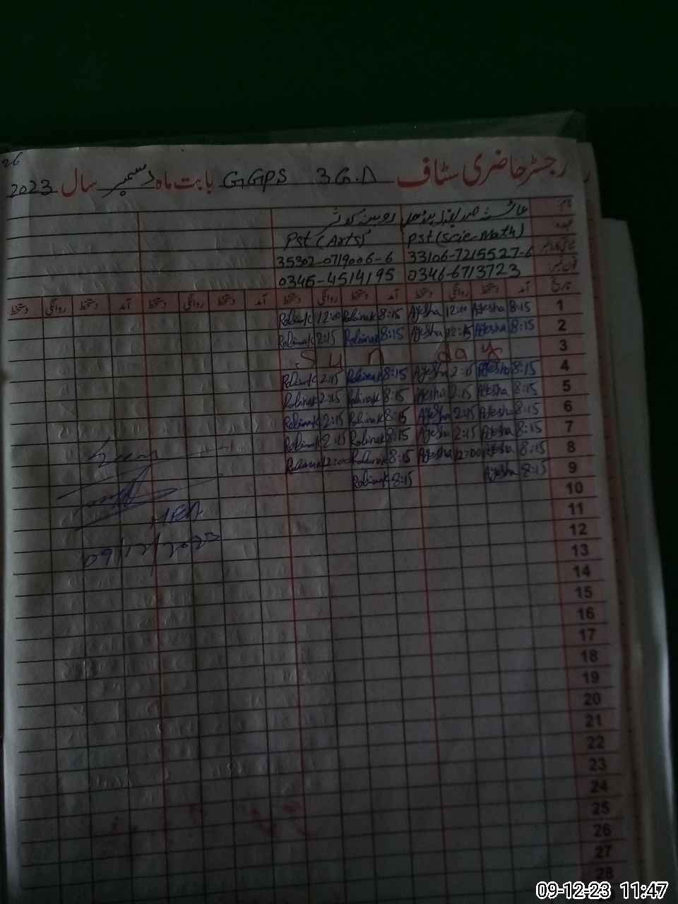 | Name: AY**** SA**** Designation: (School Headmaster's/Headmistress's) PST Phone/Cell Number: 03**** |