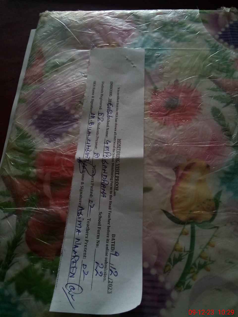 | Attendance Register | Head Teacher | MEA with School | Visit Proof |