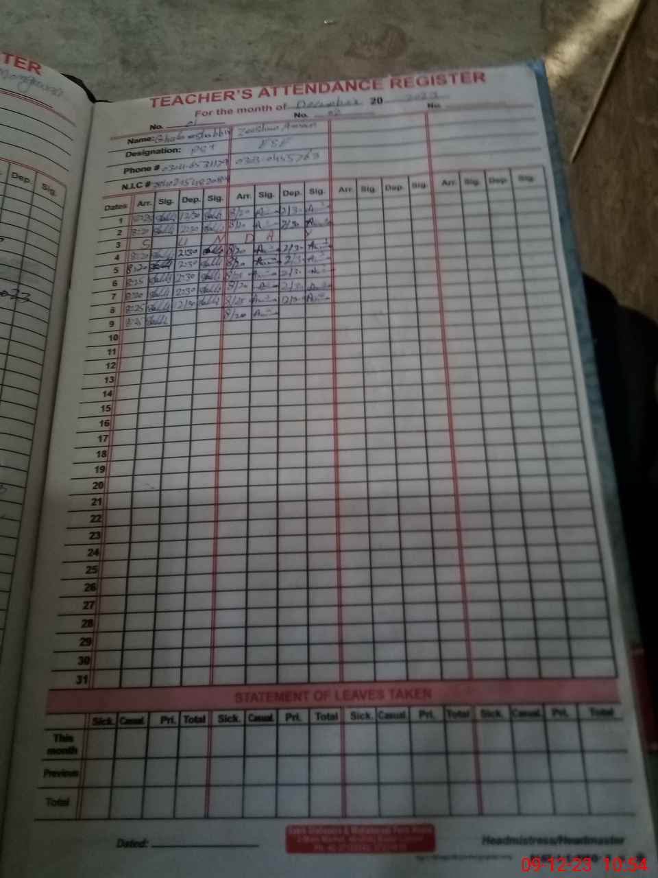 | Name: ZE**** AM**** Designation: (School Headmaster's/Headmistress's) ESE (SCI MATH ) Phone/Cell Number: 03**** |