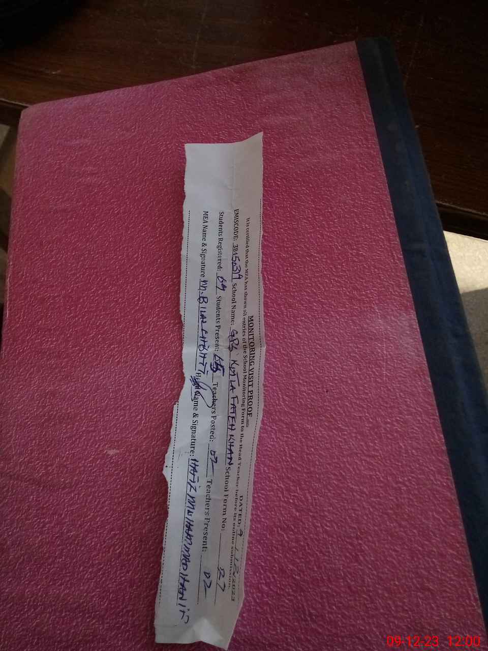 | Attendance Register | Head Teacher | MEA with School | Visit Proof |