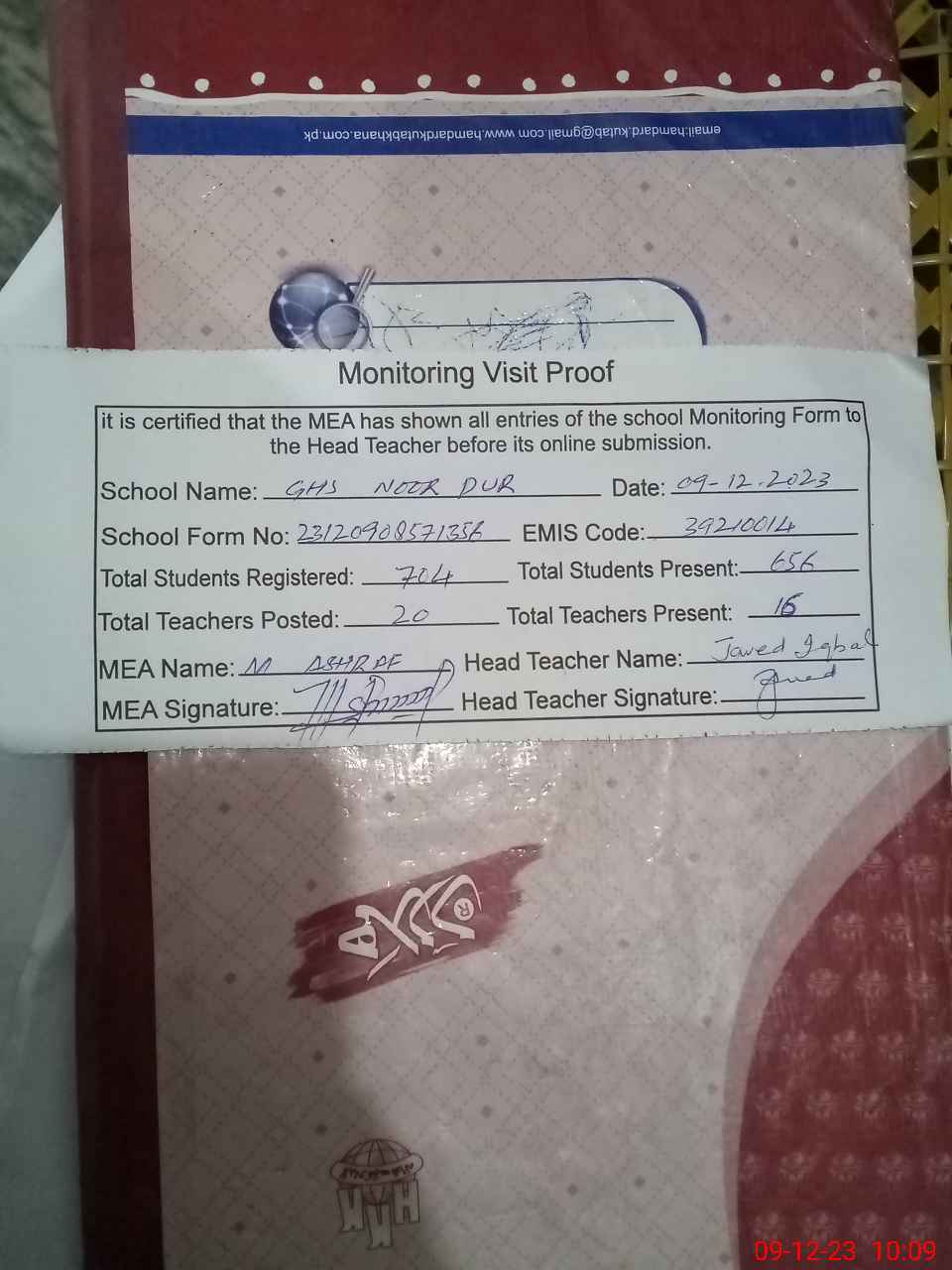 | EMIS Code: 39210014 | Name of School: GHS NOOR PUR PAKPATTAN | |||
